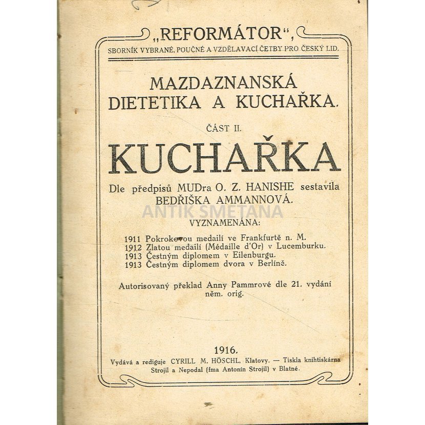 Bedřiška Ammannová - Mazdaznanská dietetika a kuchařka: Kuchařka dle předpisů MUDra O.Z. Hanishe
