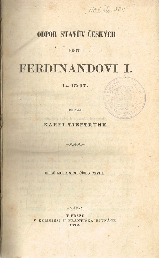Karel Tieftrunk - Odpor stavův českých proti Ferdinandovi I.