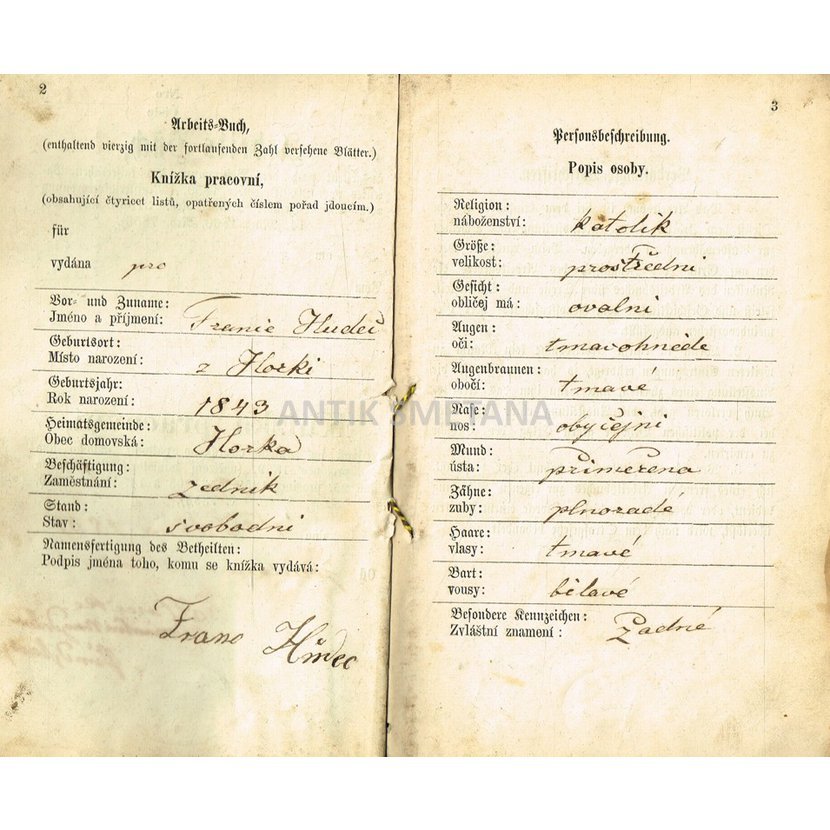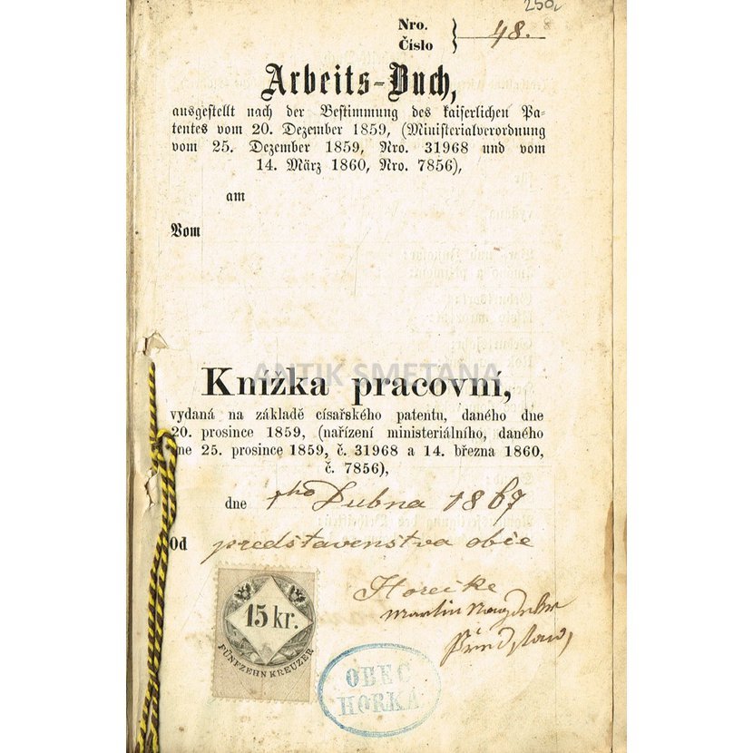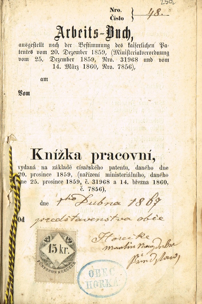 Knížka pracovní (r. 1867)