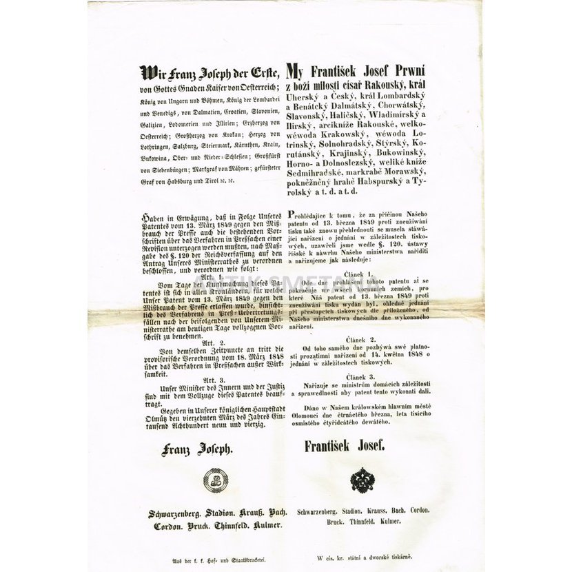 My František Josef První z boží milosti císař Rakouský...