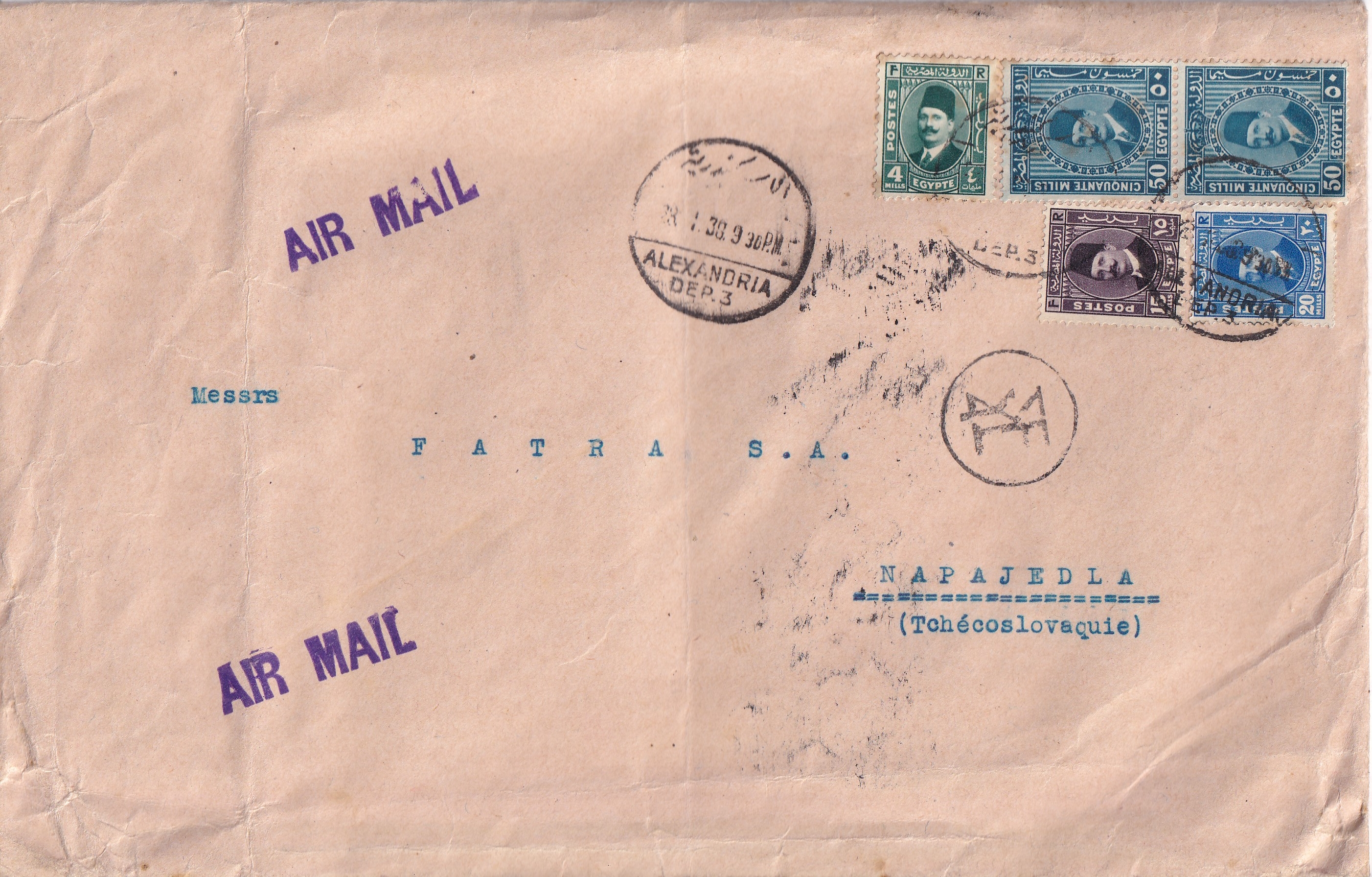 Obálka č. 734 (posláno z Egypta do ČSR)
