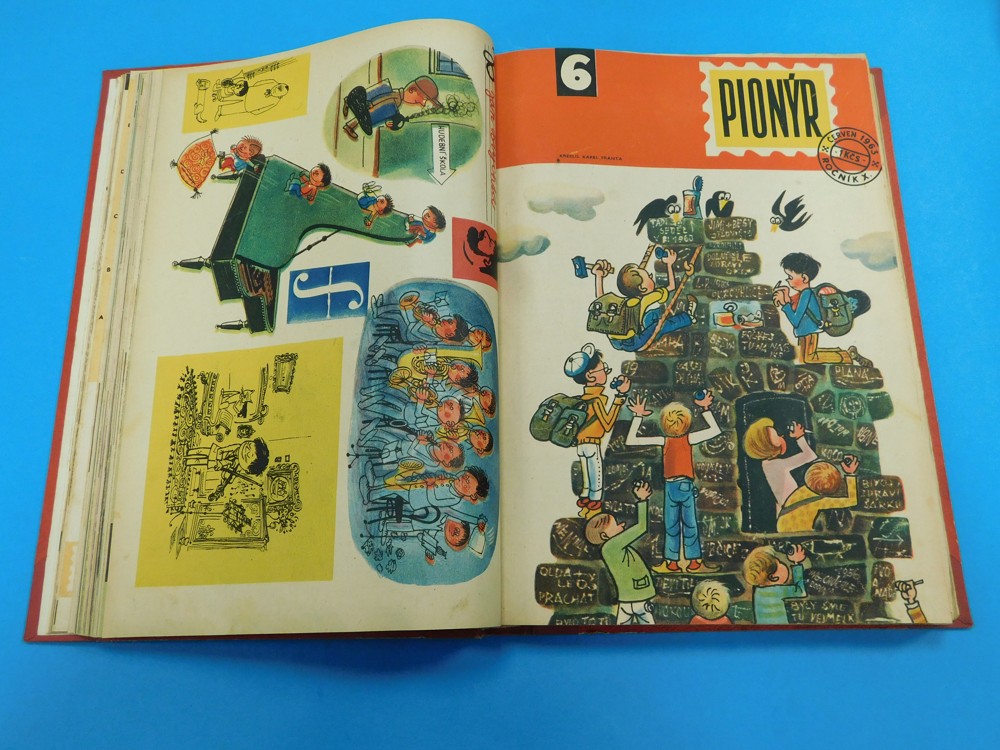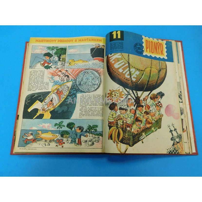 Kompletní vydání obou ročníku časopisu Pionýr, svázáno v jedné knize, tři listy uvolněny z vazby, chybí jeden list (roč. 11 č. 11 strana 11-12), dobrý stav viz foto