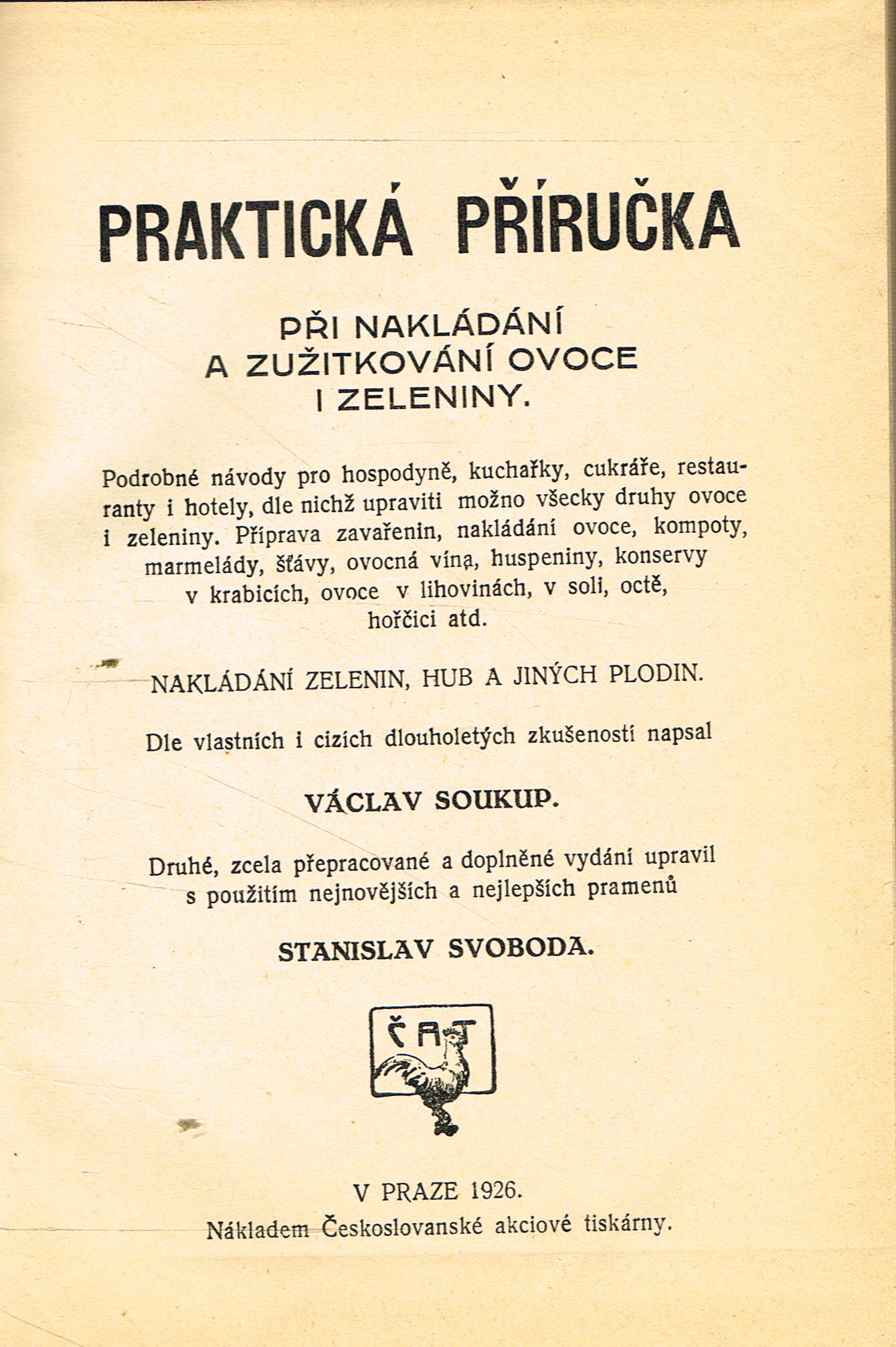 Václav Soukup - Praktická příručka při nakládání a zužitkování ovoce i zeleniny