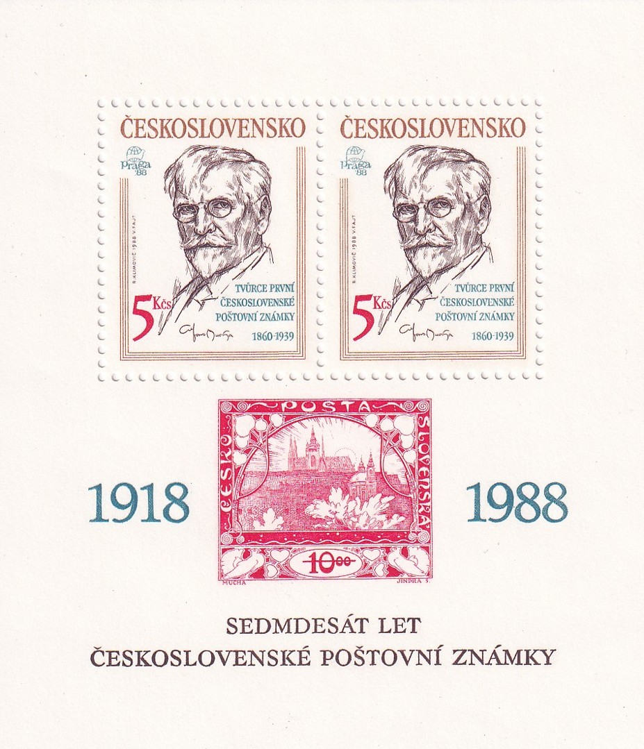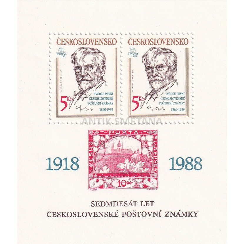Známky č. 63 Aršík Sedmdesát let Československé poštovní známky